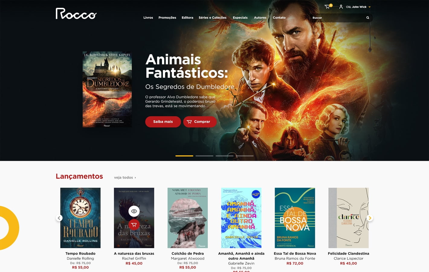 A Aldeia foi responsável pela arquitetura de informação, design e programação do novo site da Editora Rocco. Em relação ao projeto anterior, o site apresenta uma proposta estética e de estrutura mais moderna e ousada, com a inserção de carrosséis temáticos por coleção e autor.